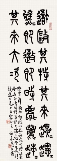 马公愚(1890—1968),现代书法家。又名范,号冷翁、畊石簃主,浙江温州人。上海中国画院画师。解放前长期从事教育工作,历任上海美术专科学校教授、上海大夏大学教授。精四体书,篆书宗法《石鼓文》、《秦诏版》,隶书取径《石门颂》,真草得力于锺繇、王羲之。笔力浑厚,气息醇雅。所书碑碣甚多。善榜书,得宽博之趣。能篆刻绘画,所作醇雅清丽。著有《书法讲话》、《书法史》、《耕石箱杂著》等。